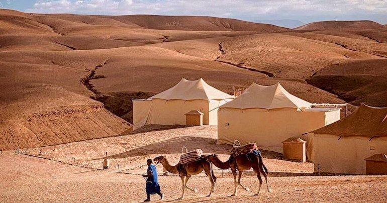 Le désert d’Agafay est aujourd’hui parsemé de lodges et de camps haut de gamme qui rivalisent de créativité pour offrir un confort optimal dans ce décor brut. Les tentes sont souvent de véritables suites : literie digne des plus beaux hôtels, salle de bain privée, terrasses avec vue panoramique…