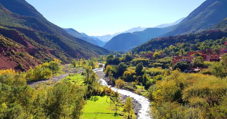 Située à environ 60 kilomètres de Marrakech, dans les montagnes de l’Atlas, la vallée de l’Ourika est un trésor naturel du Maroc. Les voyageurs qui recherchent des paysages spectaculaires, des cultures authentiques et de la tranquillité seront attirés par cette région comme un rafraîchissant refuge loin de l’agitation de la ville. Découvrez un voyage au cœur de la vallée de l’Ourika, où se mêlent harmonieusement nature et culture.