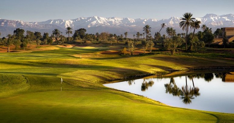 Dès votre arrivée sur le domaine, le charme opère. Palmiers élancés, lacs scintillants, végétation soignée… et en toile de fond, les sommets de l’Atlas se dressent fièrement. Le contraste est saisissant, presque irréel. Dans ce décor digne d’une carte postale, le Golf Amelkis déploie ses 27 trous sur un parcours technique et élégant, réparti sur plus de 10 000 mètres.