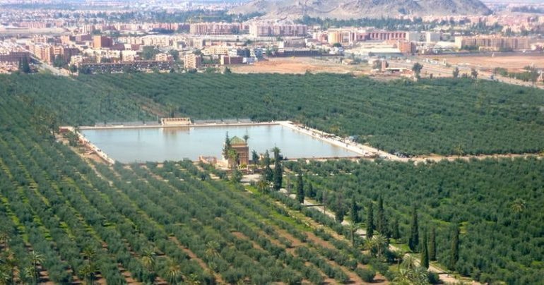Depuis neuf siècles, les jardins de la Ménara sont un des lieux les plus attractifs de Marrakech. Situés à proximité de l’aéroport international, ils sont souvent la dernière visite des voyageurs avant leur départ ou une pause bienvenue avant de commencer leur voyage de retour. À l’origine, ces jardins avaient une vocation agricole. Le lac artificiel, un des éléments les plus beaux des jardins, est alimenté par les eaux des montagnes de l’Atlas grâce à des infrastructures mises en place au XIIe siècle par le calife Abd al Mu’min.