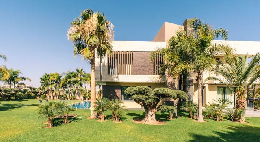 Au cœur du prestigieux Golf Argan, la Villa Ref:CLN offre un écrin de sérénité où le luxe contemporain s'accorde harmonieusement avec l'élégance marocaine. Dès l'arrivée, l'atmosphère inspire le calme : jardin soigné, palmiers élancés, terrasses baignées de lumière et vue dégagée sur le parcours. Cette adresse exclusive, idéale pour un groupe jusqu'à 10 personnes, séduit autant par son cadre privilégié que par ses volumes généreux pensés pour un séjour convivial et raffiné.
