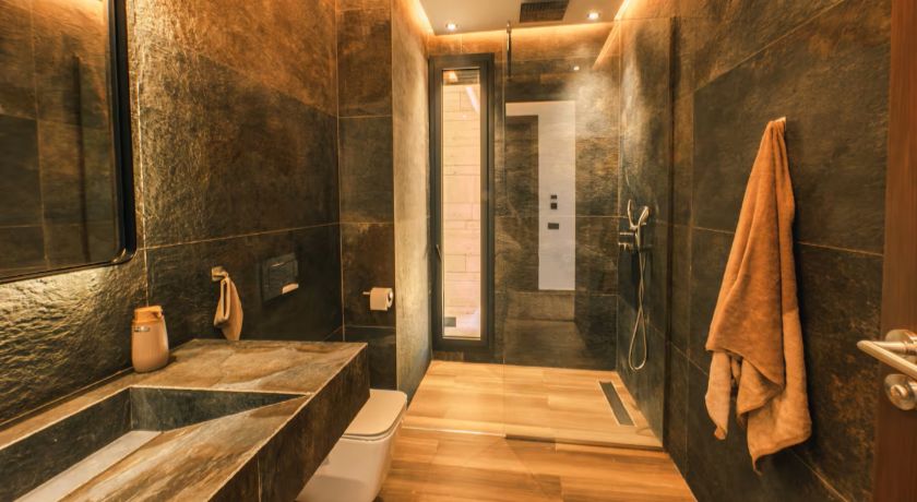 La villa a été pensée comme un véritable lieu de ressourcement. Une salle de sport est à disposition pour les amateurs d'exercice matinal, tandis que le hammam et la salle de massage invitent à un instant bien-être dans l'intimité des lieux. À l'extérieur, la piscine, pouvant être chauffée, s'intègre parfaitement au décor verdoyant. Bordée de transats et prolongée par de larges terrasses, elle devient le centre de vie de la maison, idéale pour profiter du soleil tout au long de la journée.