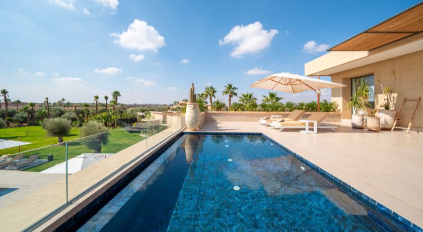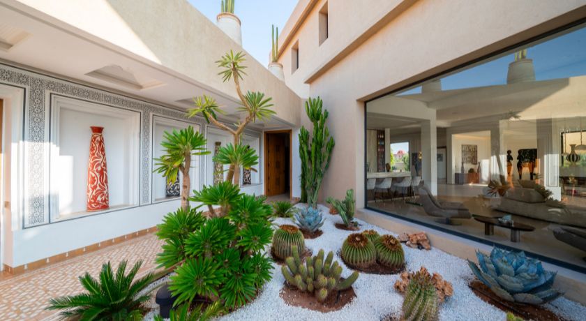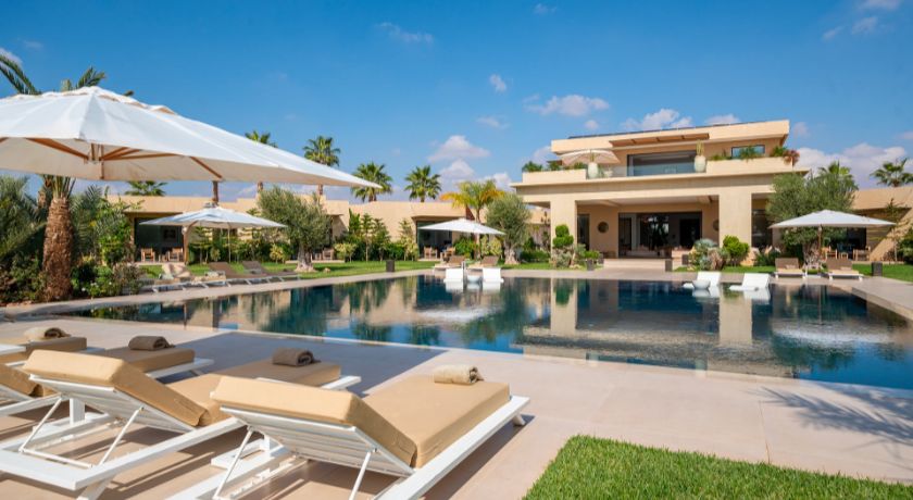 La Villa Ref:DAB est un véritable havre de paix situé à seulement 12 minutes du centre de Marrakech, offrant une expérience de luxe dans un cadre serein et privatif. Nichée dans un quartier résidentiel exclusif, cette propriété de 10 chambres, entourée d'un vaste parc d'un hectare, combine confort moderne et traditions marocaines pour des séjours exceptionnels. À l'intérieur, chaque chambre est équipée d'une salle de bain privée et d'une terrasse offrant une vue sur les jardins luxuriants ou les piscines. L'emplacement stratégique de la villa, proche des prestigieux golfs d'Amelkis, Royal Golf et Al Maaden, permet de concilier calme et activités de loisir.