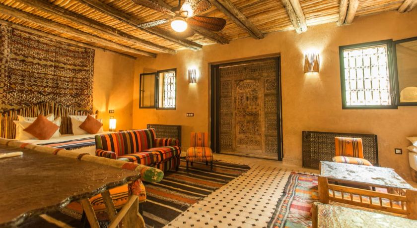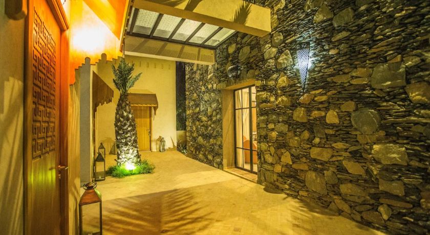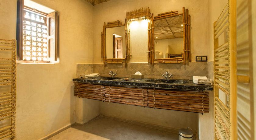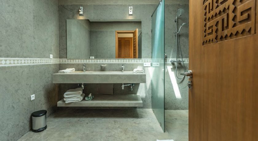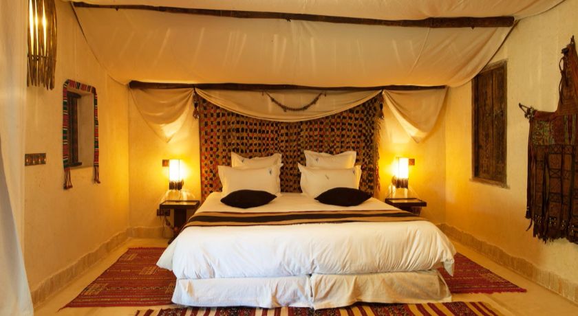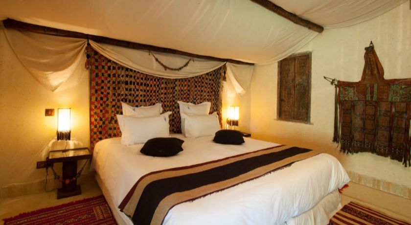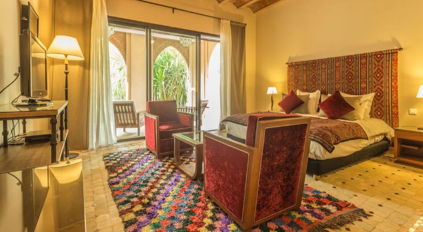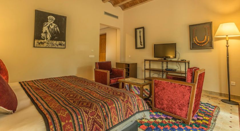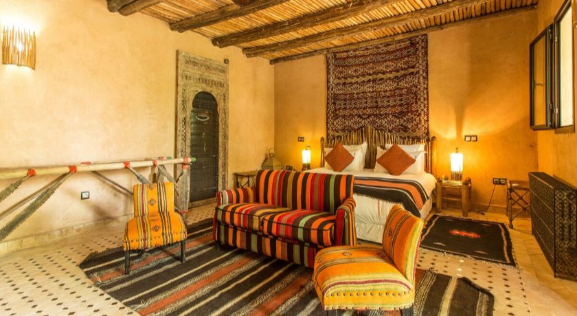 La propriété se compose d'une grande villa de 9 chambres – complétée par 2 lodges indépendants de 4 chambres chacun, permettant d'offrir à chaque hôte un véritable sentiment d'intimité. Certaines chambres disposent d'un accès direct au jardin ou à la piscine, d'autres s'ouvrent sur de belles terrasses en étage, toutes bénéficiant d'un confort moderne : lits king-size, climatisation, salles de bains privatives, cheminées ou salons selon les catégories. Les 4 suites berbères, véritables pavillons au charme unique, apportent une touche dépaysante : habillées comme des tentes traditionnelles à l'extérieur et aménagées avec un luxe feutré, elles créent un petit village intime autour d'une piscine chauffée, notamment magique à la tombée de la nuit.