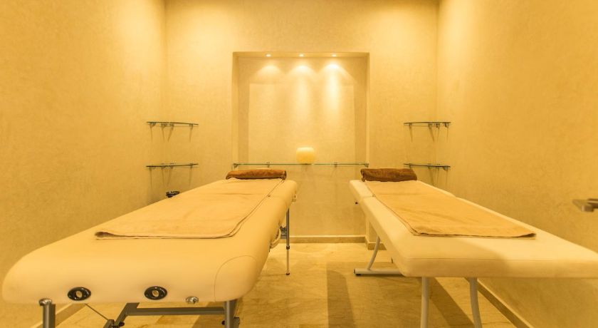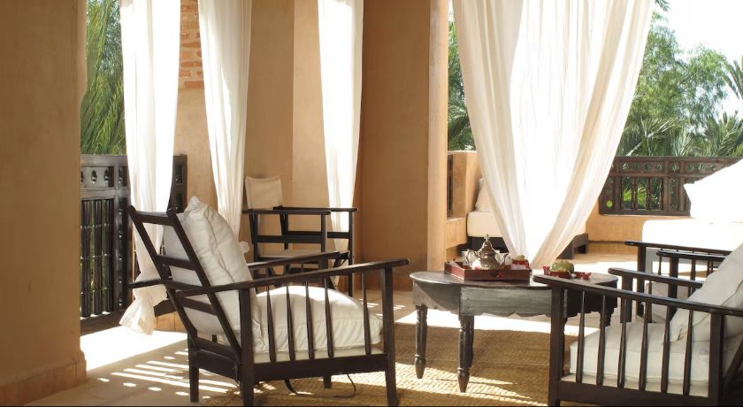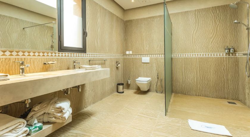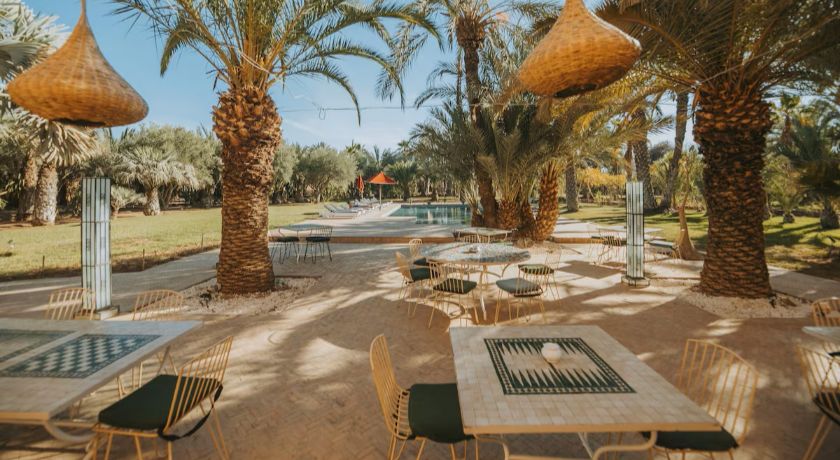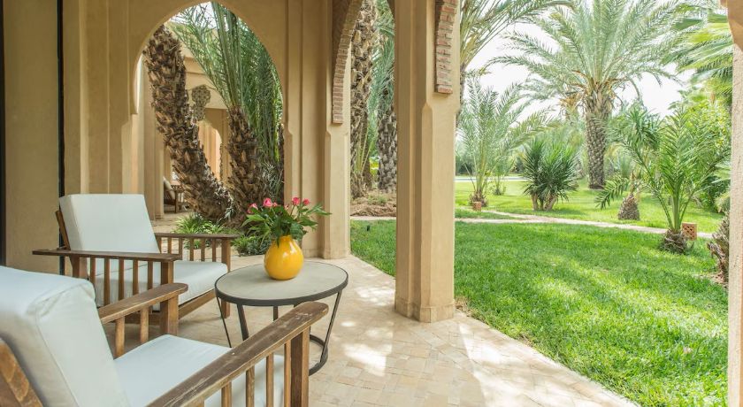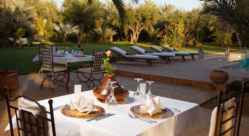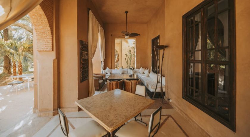 Un personnel dévoué veille au confort quotidien, avec une présence discrète mais efficace. Les petits-déjeuners sont inclus et servis chaque matin, tandis que les déjeuners et dîners peuvent être préparés sur demande selon les envies du moment. Le hammam traditionnel, les soins et les massages ajoutent une dimension bien-être très appréciée, complétant parfaitement l'esprit paisible et luxueux de cette magnifique adresse de la Palmeraie.