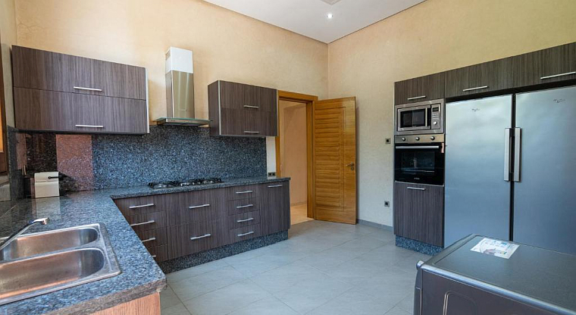La villa comprend 4 chambres spacieuses, chacune avec sa salle de bain privée, un décor raffiné inspiré de l'artisanat marocain, et une atmosphère propice au repos. Les espaces de vie — salon convivial, salle à manger élégante et cuisine équipée — invitent à partager des moments chaleureux en famille ou entre amis.