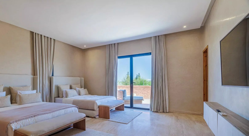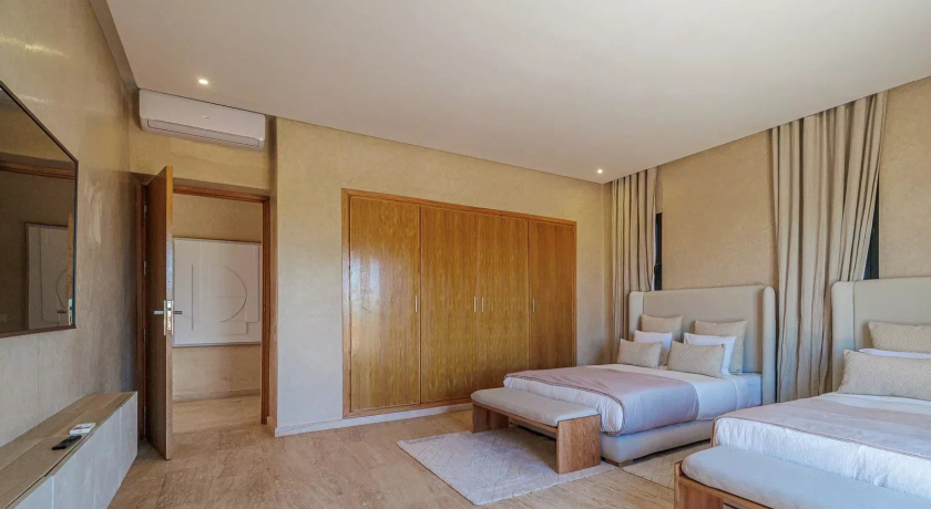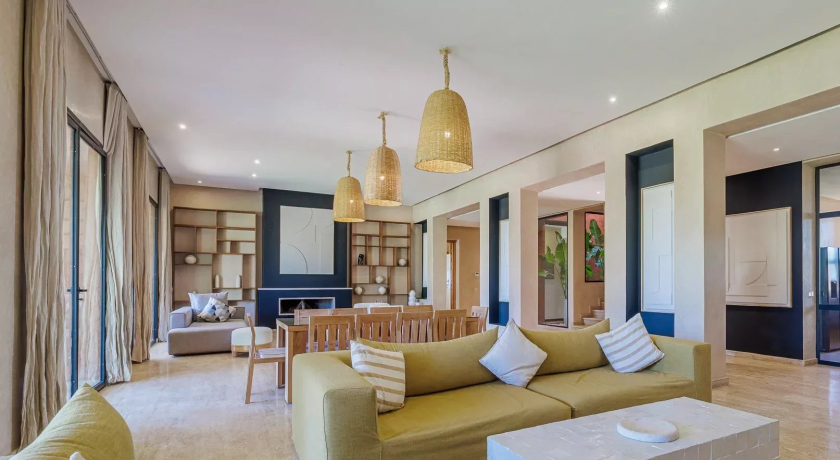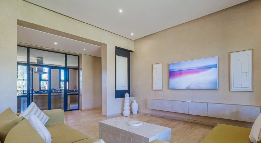 La Villa Ref:PAM2 incarne l'essence du luxe à la marocaine, avec un service de qualité assuré par une équipe discrète et professionnelle. Cuisinière, femme de ménage, gardien et jardinier sont présents pour veiller à votre bien-être et vous offrir un service personnalisé tout au long de votre séjour. Vous pourrez ainsi profiter pleinement de votre séjour en toute tranquillité.
