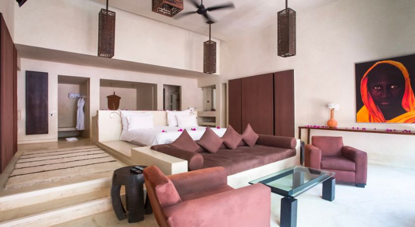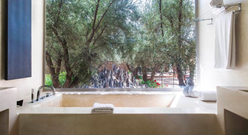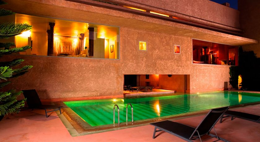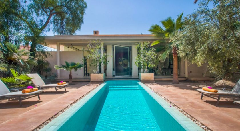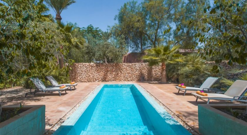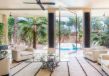 Le domaine extérieur est une invitation permanente au calme et à la contemplation. Les grandes terrasses dominent une piscine majestueuse longée de végétation, idéale pour savourer la douceur de la Palmeraie. À quelques pas, une seconde piscine chauffée offre une atmosphère plus confidentielle. Pour les plus actifs, un court de tennis en terre battue et un espace fitness complètent les installations, tandis que le spa, le hammam et la salle de sport permettent de prolonger les moments de bien-être. Le restaurant privé vient sublimer l'expérience avec une cuisine marocaine, européenne ou asiatique, préparée par un personnel discret et expérimenté.