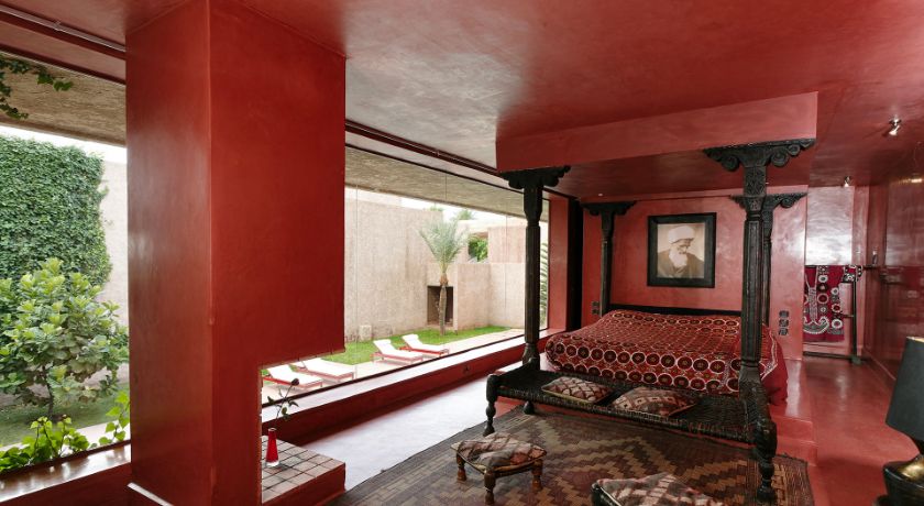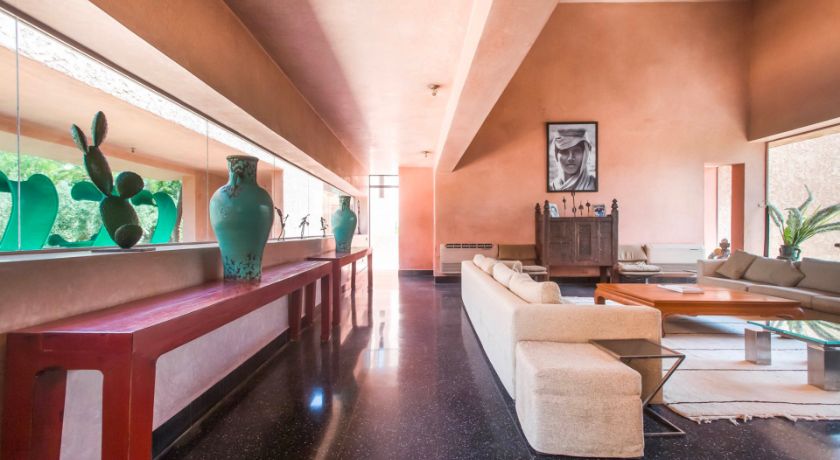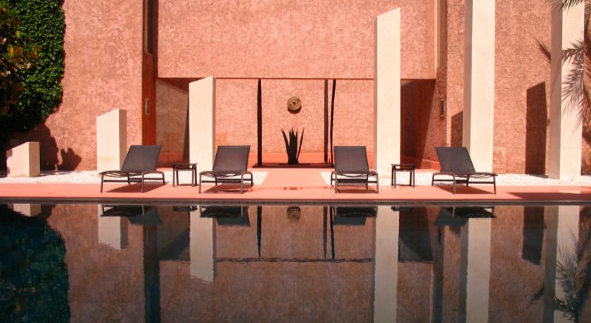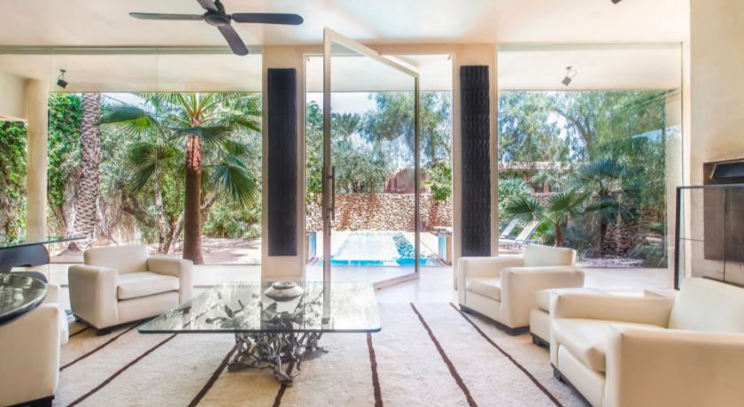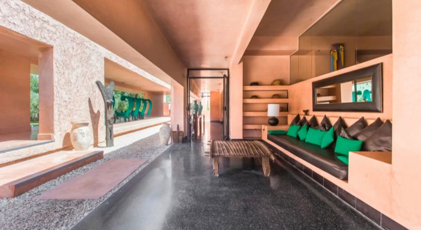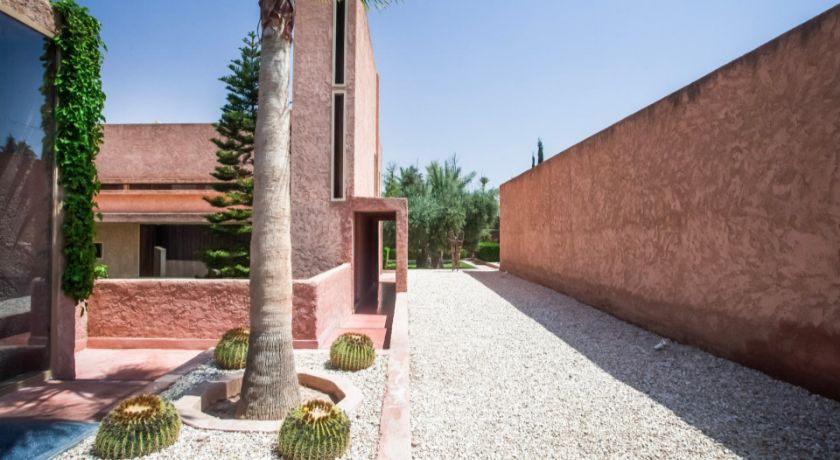 Nichée au cœur de la Palmeraie, au douar Abiad, la Villa Ref:SBR est l'une des propriétés les plus emblématiques de Marrakech, un véritable domaine hôtelier privé qui s'étend sur deux hectares de jardins sculptés, ponctués d'oliviers, de palmiers et d'œuvres contemporaines. À seulement dix minutes du centre-ville et à proximité immédiate des trois grands golfs, cette adresse d'exception offre un sentiment d'évasion totale où architecture avant-gardiste et nature préservée composent un cadre rarissime. La villa, inspirée de l'univers de Luis Barragan, joue avec les volumes, la lumière et les perspectives pour créer une atmosphère à la fois sophistiquée, chaleureuse et résolument moderne.