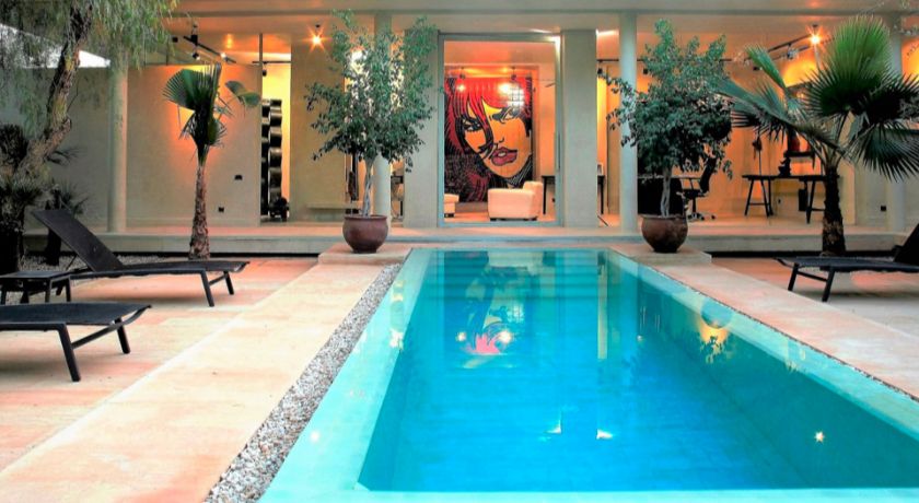 Pensée comme un vaste refuge de luxe, la maison s'organise autour d'un patio central qui distribue les principaux espaces de vie : salon avec cheminée, terrasses intimistes, bibliothèque inspirante, salle de projection cinéma et plusieurs zones de détente ouvertes sur le jardin. Les 21 chambres et suites, chacune avec salle de bain privée, se répartissent entre le rez-de-chaussée, les étages et le niveau inférieur, offrant une grande fluidité d'accueil pour les groupes. Certaines suites se rassemblent autour d'une seconde piscine chauffée baignée de lumière, tandis que huit nouvelles suites, installées dans le parc près d'une piscine à débordement, prolongent l'expérience vers un confort encore plus exclusif. Partout, le décor témoigne d'un goût sûr, mêlant pièces d'art, objets chinés et lignes épurées.