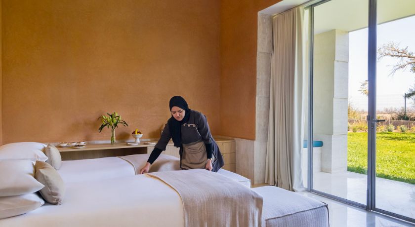 La villa propose un service hôtelier complet avec un personnel qualifié, y compris un majordome et un chef privé pour répondre à toutes vos attentes. Vous pourrez également profiter d'un large éventail de services supplémentaires, comme des excursions personnalisées, des cours de cuisine, ou même des balades en montgolfière, pour rendre votre séjour encore plus exceptionnel. À seulement 20 km du centre de Marrakech, la villa est idéalement située pour découvrir la ville et ses environs.
