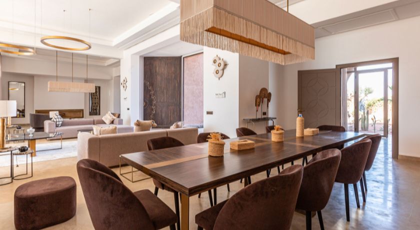 Le séjour est agrémenté de services inclus et à la carte afin de garantir un confort optimal. Le petit-déjeuner est compris, et une équipe discrète assure l'entretien quotidien de la propriété. Une conciergerie est disponible pour organiser repas, activités et prestations sur mesure, tandis qu'un gardien veille sur la villa 24h/24. Chauffage de la piscine, massages, hammam ou services de cuisine peuvent être ajoutés selon vos envies, pour un séjour entièrement personnalisé aux portes de Marrakech.