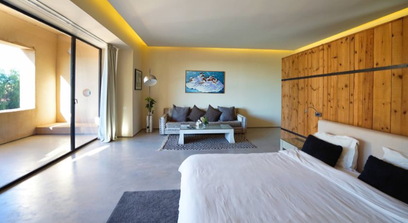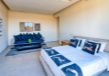 Le premier bâtiment accueille les principaux espaces de vie : une entrée qui s'ouvre directement sur la piscine de 23 m de long, un vaste salon avec cheminée, une salle à manger lumineuse, ainsi qu'un salon TV/cinéma indépendant pour des soirées conviviales. On y trouve également une grande cuisine avec office équipé, des sanitaires invités et une somptueuse suite master comprenant chambre, salon privé, dressing, salle de bain complète et WC séparés. Le second bâtiment est entièrement dédié au repos, avec cinq chambres spacieuses, chacune dotée d'une terrasse privée, d'un dressing, d'une salle de bain avec baignoire et douche, et de WC séparés.