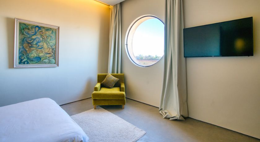 La villa bénéficie en outre d'un niveau technique rare à Marrakech : ossature antisismique, isolation renforcée, menuiseries en acier avec vitrage Stadip, chauffage au sol et radiateurs selon les zones, climatisation gainable par zones, eau chaude solaire, domotique, éclairage intérieur et extérieur conçu par un professionnel... Chaque détail a été pensé pour offrir un véritable confort haut de gamme, tout en garantissant tranquillité, performance et élégance.