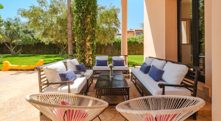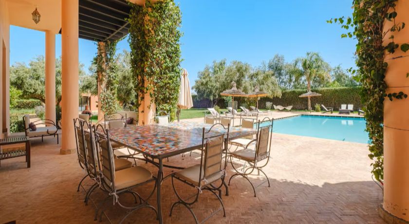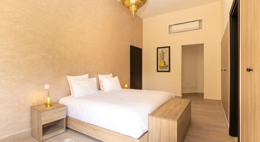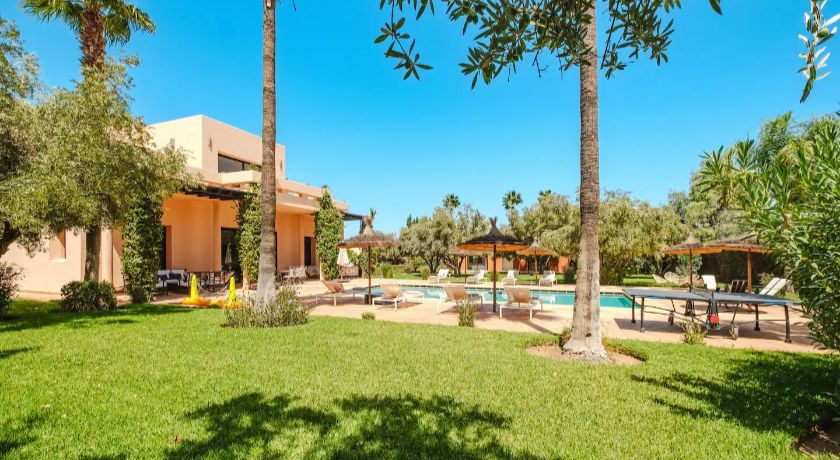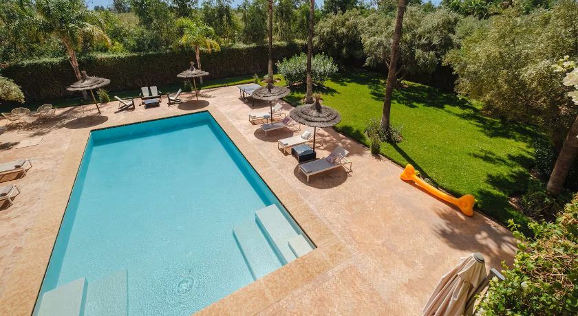 Pensée pour accueillir les familles et les groupes d'amis, la villa dispose de huit superbes suites, chacune dotée de sa propre salle de bain, alliant élégance, confort et intimité. Les vastes espaces de vie s'ouvrent sur un magnifique jardin paysager et une piscine scintillante, idéale pour se détendre sous le soleil marocain — celle-ci peut être chauffée sur demande, avec deux jours de préchauffage prévus.
